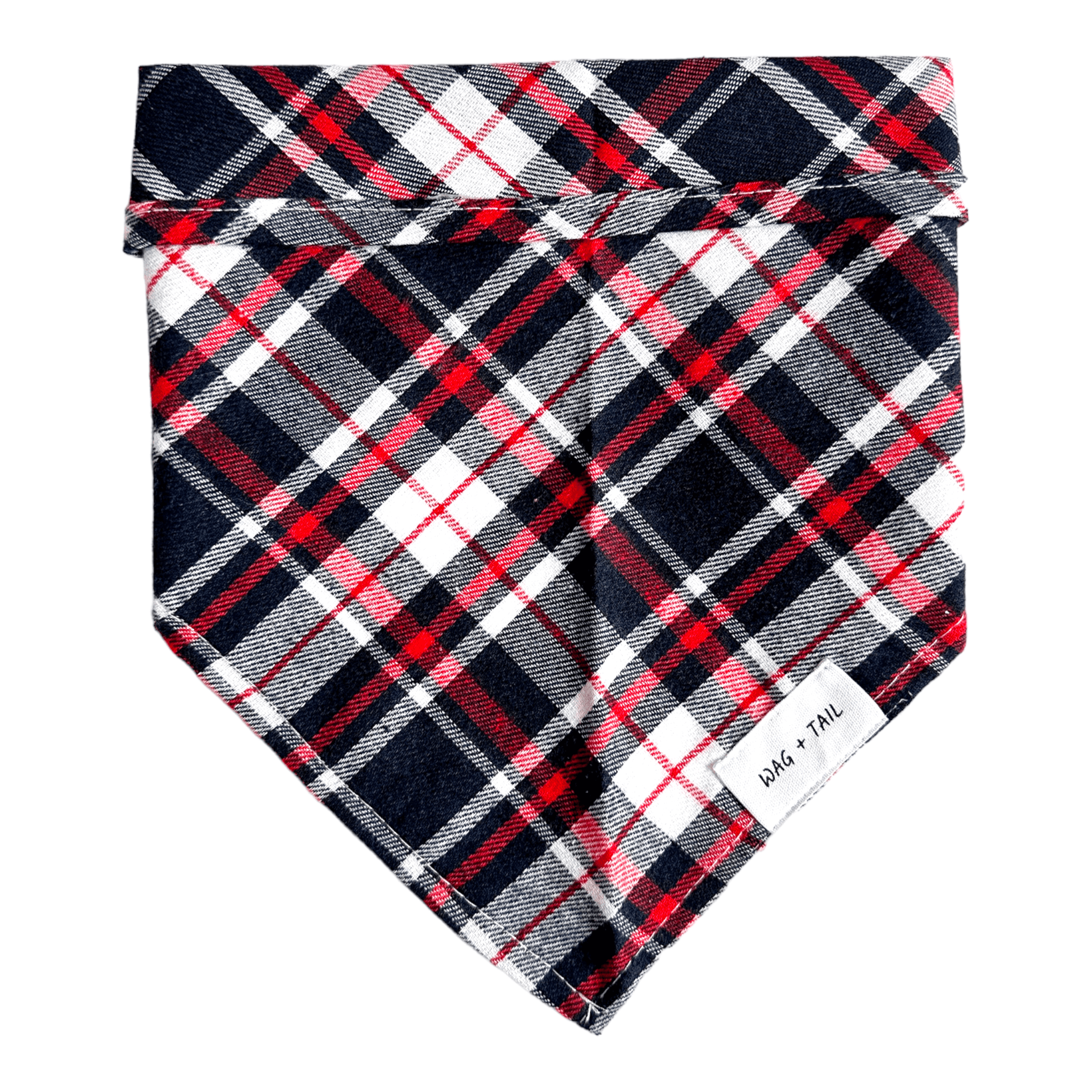 The Wag + Tail Reversible Plaid Dog Bandanas are made for everyday wear with a little extra style built in. Crafted from a soft, lightweight fabric blend, these bandanas are breathable, comfortable, and easy to tie for a secure fit. Perfect for daily walks, weekend outings, seasonal photos, and dogs who like their accessories to work as hard as they do.